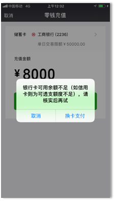 情况四、缴费时提示限额问题:您可以把钱从您的银行